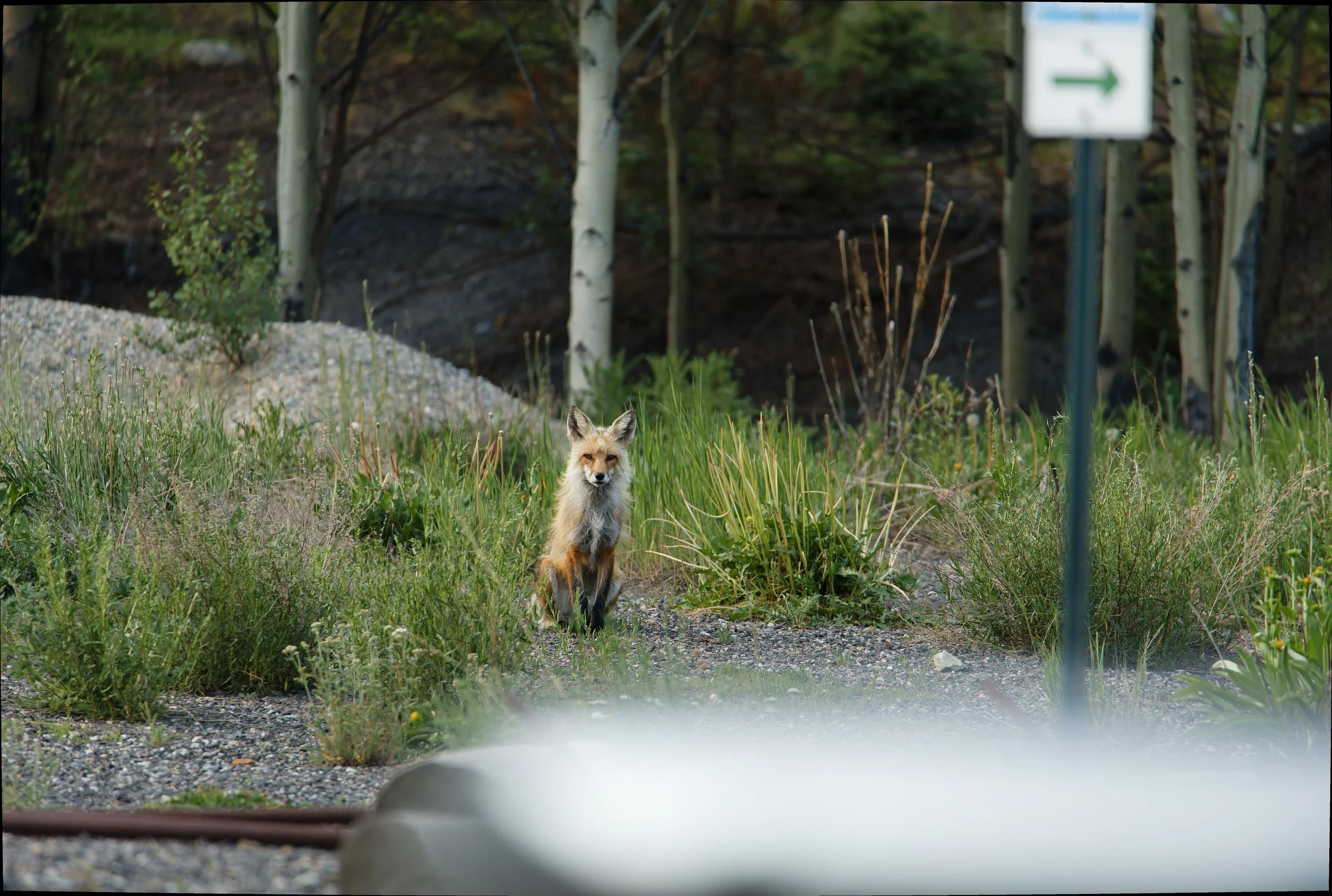 July 8th, Breckenridge, CO - After several nights looking for the elusive hunter, I was walking back from a popular trail on the outskirts of town at dusk and looked up to see the figure curiously looking at me. After observing each other for a minute or two, the fox walked on down the road and back into the dark forest.